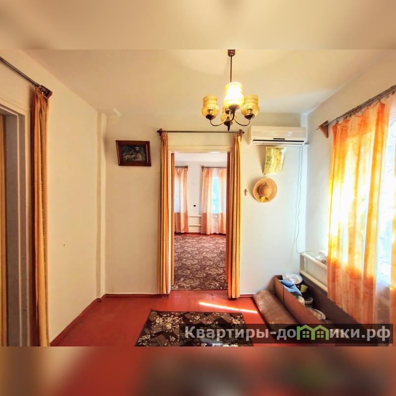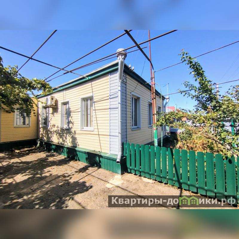 Турлучное домовладение, с внешней стороны обшито сайдингом, кровля - шифер, о.п. 45,6 кв.м., расположенное по ул. Ленинградская. Состоит из трех жилых комнат смежно-раздельного расположения, кухни, с/у и коридоров. Стены и потолки побелены, полы - дощатые. В кухне стены окрашены, потолки побелены, полы застелены линолеумом. С/у раздельный, окрашен краской. Установлены металлопластиковые окна. Счетчики на все коммуникации. Сплит-система. Автоматический газовый водонагреватель. Отопление - напольный газовый котел. Входная дверь - металлическая.