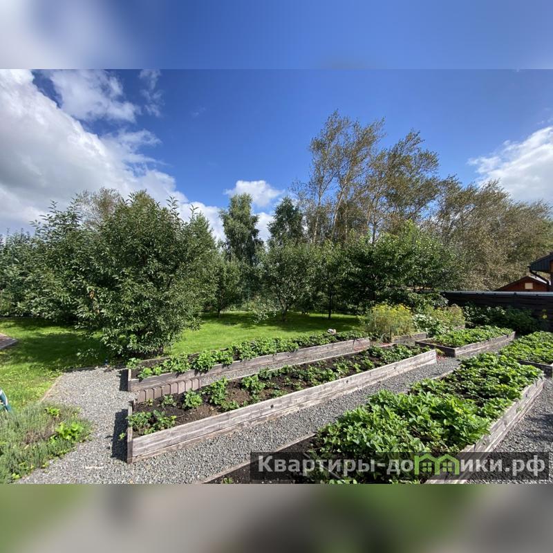 Участок ровный с плодовыми деревьями, ягодами (Малина, ежевика, красная и черная смородина, виноград), декоративными посадками и ровными газонами.