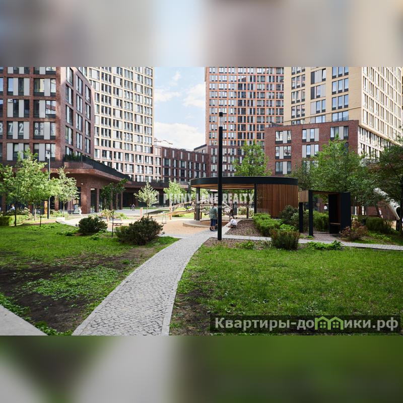 4.Закрытый, охраняемый внутренний двор без машин, с прогулочными дорожками, местами для тихого отдыха, двумя детскими площадками для разных возрастных групп, уединенными перголами и большой круглой беседкой;