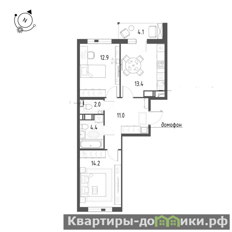 Комнаты 14,2м2+12,9м2