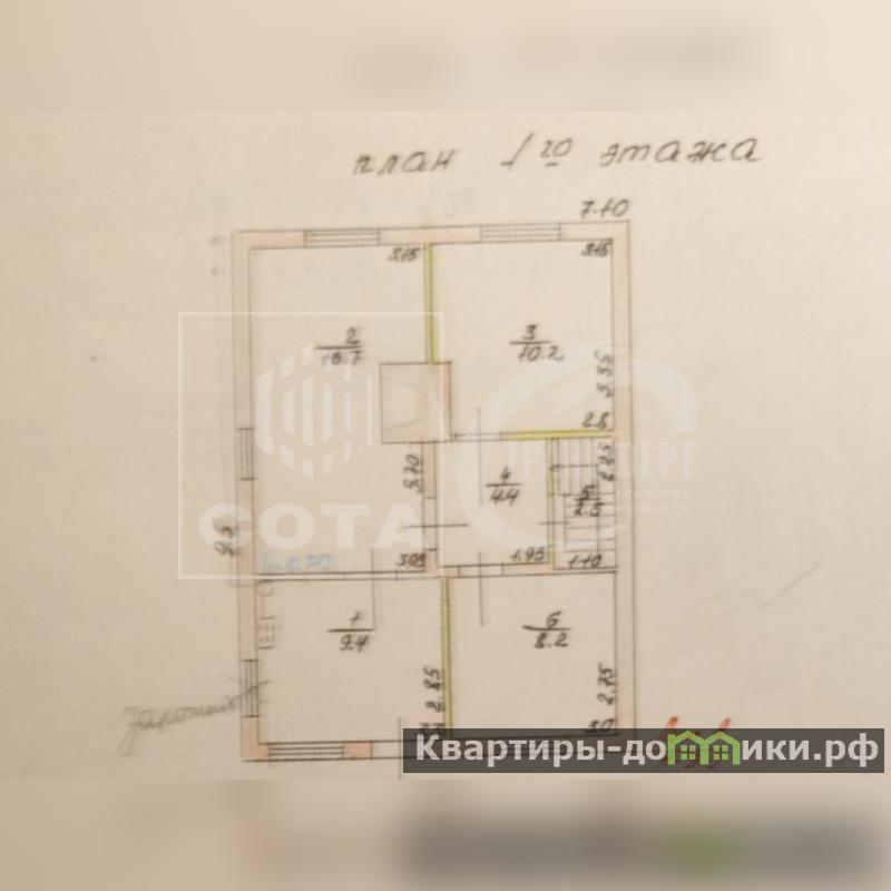 2 этажа, 3 комнаты на первом этаже, кухня, 2 комнаты на втором этаже, 2 сан. узла.