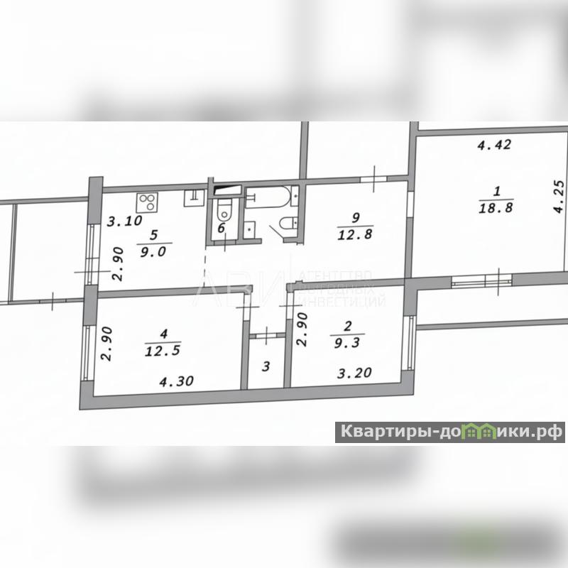 три изолированные комнаты (18,8 м?, 12,8 м?, 12,5 м?),