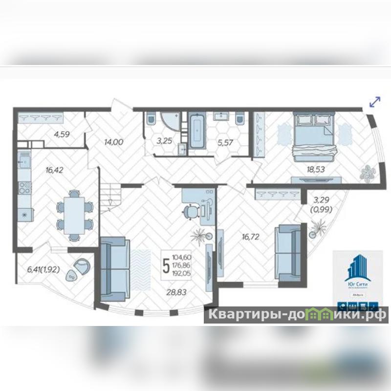 Продается пентхаус 121 кв. м с ВЫГОДОЙ 2 812 825 рублей, в современном жилом комплексе, аналогов которому в городе нет. Это город в городе. На территории района три современных детских сада и своя школа, детская и взрослая поликлиники, фитнес клуб