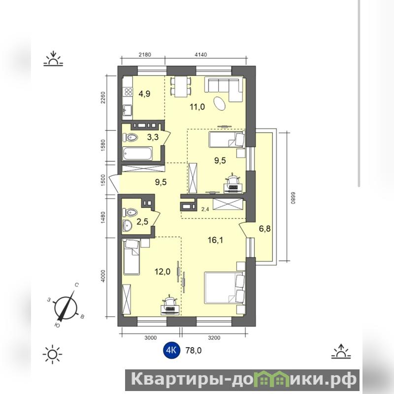- Два санузла в разных сторонах квартиры