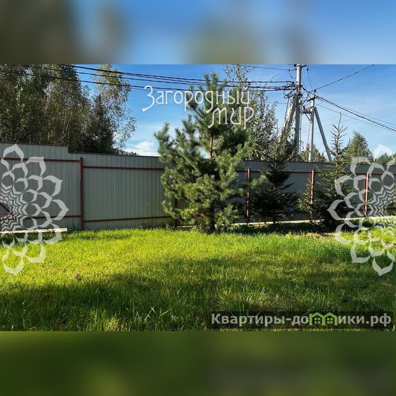 Участок: 6 сот.: огорожен забором из металлопрофиля, откатные автоматические ворота; парковка; на участке садовые и лесные деревья (берёза, сосны, ели), газон.