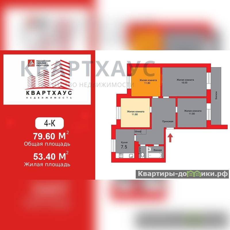 Продается комната 12 м.кв. в 4-комнатной квартире.