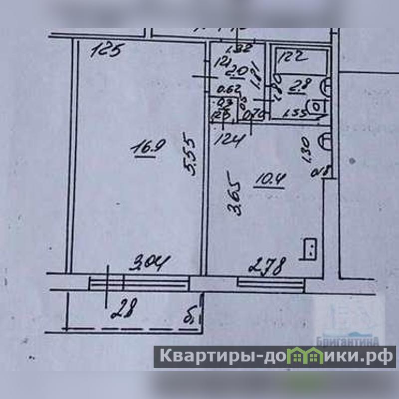 Общая площадь квартиры 32,4 кв.м., комната 16,9 кв.м., кухня 10,4 кв.м.