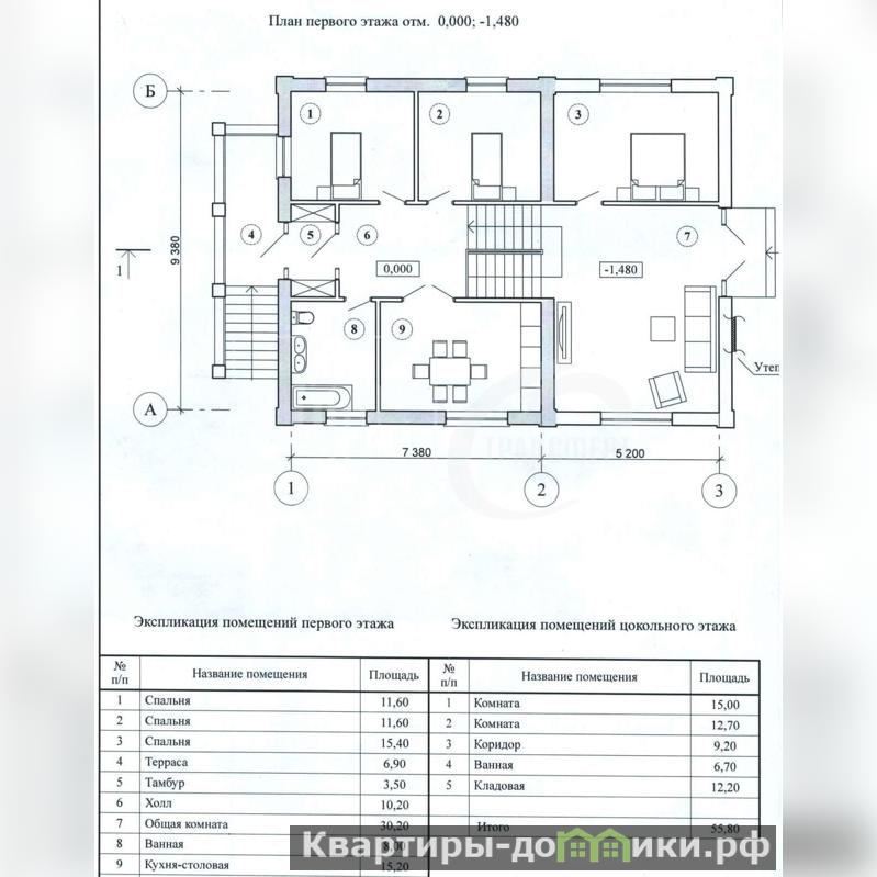 На цокольном этаже прачечная, две комнаты отдыха, ванная.