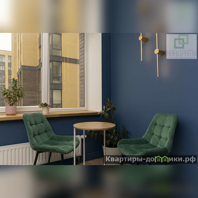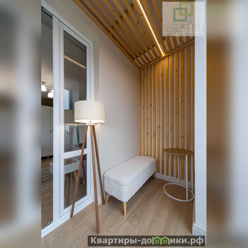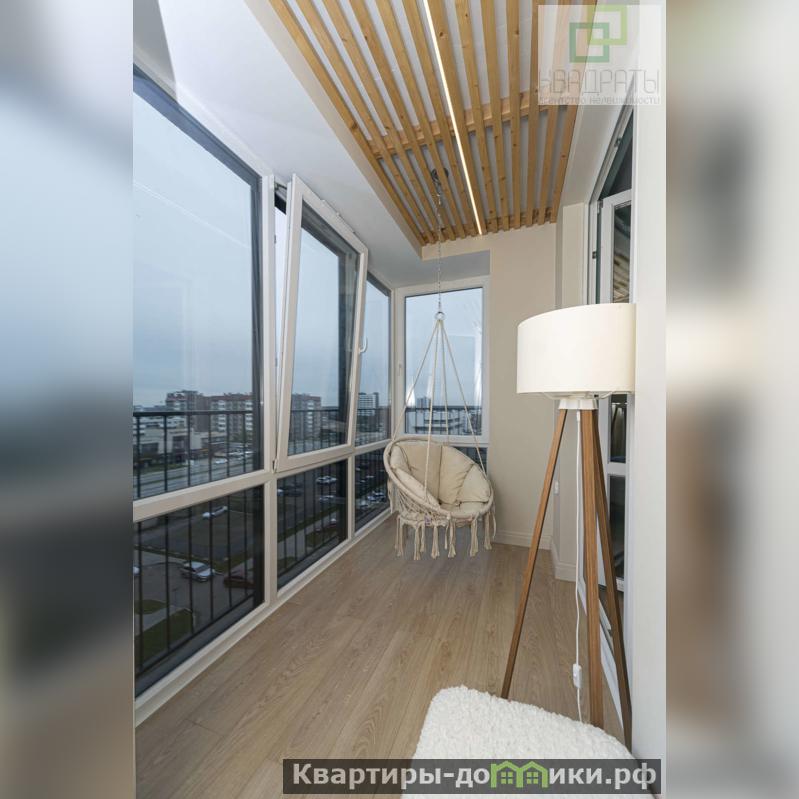 Приличная видовая лоджия с теплыми полами, панорамным остеклением (площадь квартиры вместе с ней 66, 5м2). Оконные подоконники выполнены из массива дуба.