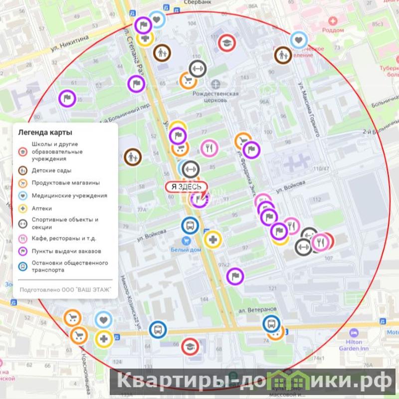 Район улицы Степана Разина — это один из самых привлекательных и спокойных районов в центре Калуги. Здесь сочетается историческая атмосфера с современной инфраструктурой: в шаговой доступности находятся магазины, кафе, школы, детские сады, поликлиники и парковые зоны для отдыха. Отличная транспортная доступность позволяет быстро добраться до любой части города. Район идеален для семей с детьми и тех, кто ценит тишину и уют.