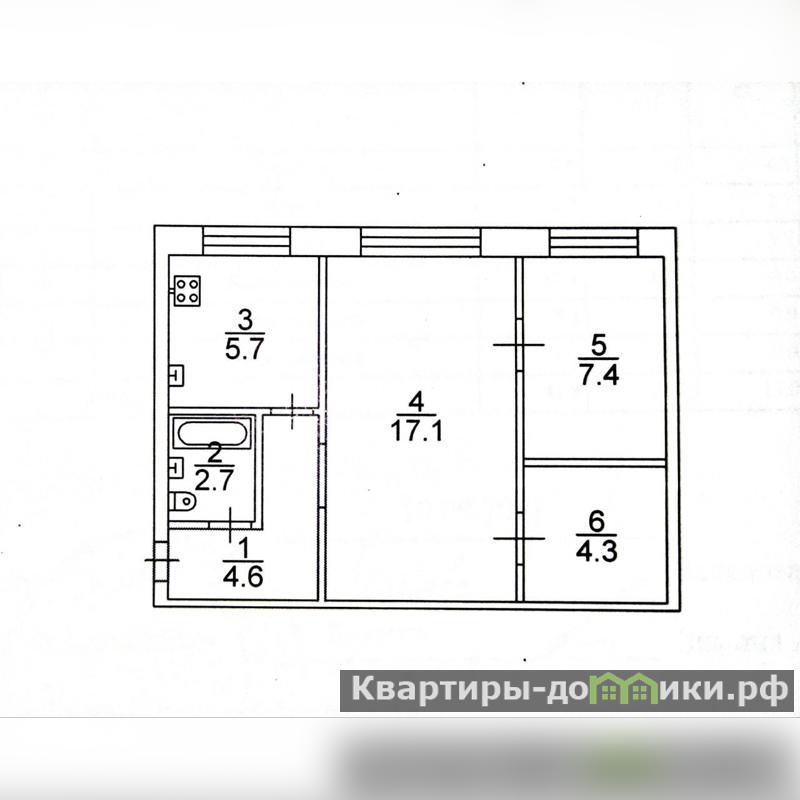 - Комнаты: 17,1 + 7,4 + 4,3 кв.м