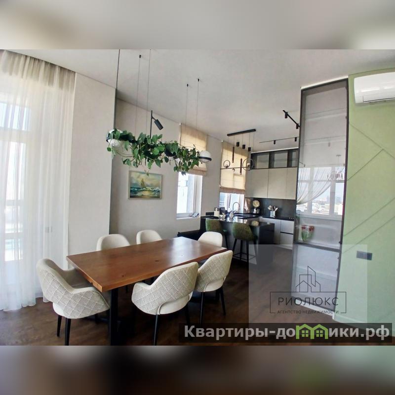 Главное украшение квартиры - гостиная , переходящая в зону столовой и кухни. Каждая из трех приватных комнат имеет рабочую зону, продуманную систему хранения и спальное место. Мастер-спальня имеет свою ванную комнату, гардеробную комнату и лоджию с теплым полом и панорамным остеклением. В квартире оборудована хозяйственная комната со стиральной и сушильной машиной, местами хранения. <br />