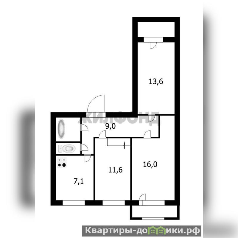 Продается типовая трехкомнатная квартира в городе Новосибирске на улице Дуси Ковальчук, дом 20. Общая площадь квартиры составляет 59,9 квадратных метров.