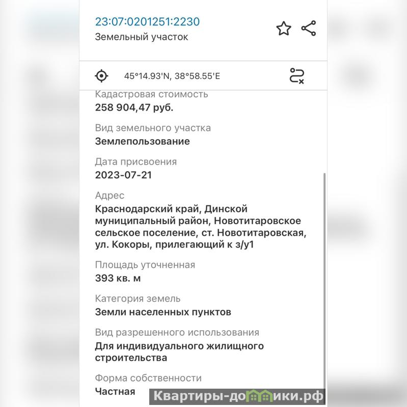 | Динской р-н., Новотитаровская ст-ца, ул. Кокоры, прилегающий к, 1 | |