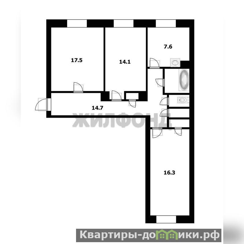 3 комн. квартира по ул. Дзержинского проспект. Общей площадью: 76.90 кв.м.