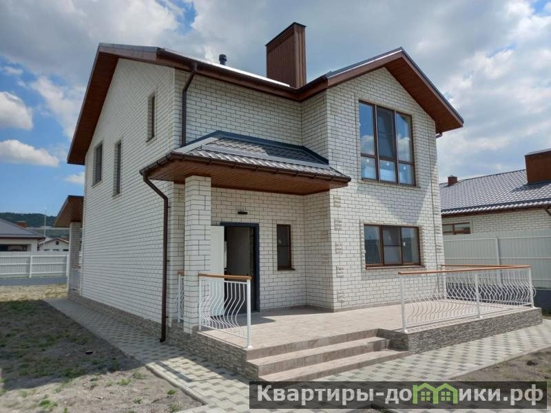 Облицовка – белый кирпич (120 мм.). Цокольная часть обложена декоративным кирпичом. Материал крыши – металлочерепица серого цвета.