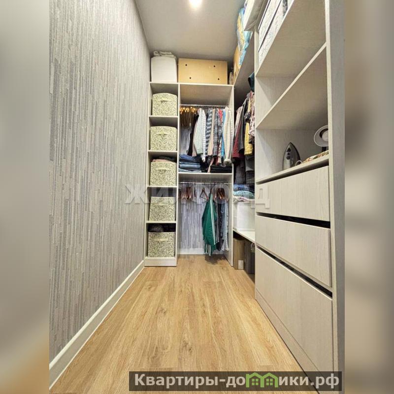 Вместительная гардеробная с системой хранения.