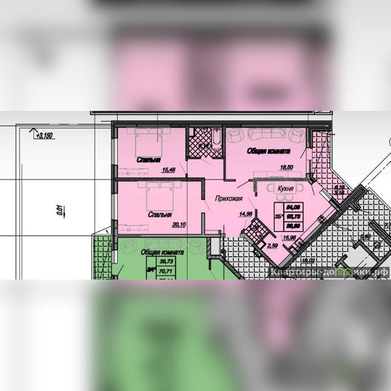 3 отдельные комнaты,большая куxня, 2 cанузлa, кладовая, застекленная ленточная лоджия! Из спален есть выход на 40 м2 козырька коммерции.