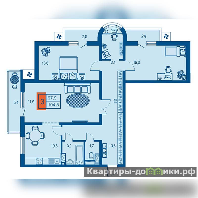 Трёхкомнатная квартира с планировкой на 2 стороны света.