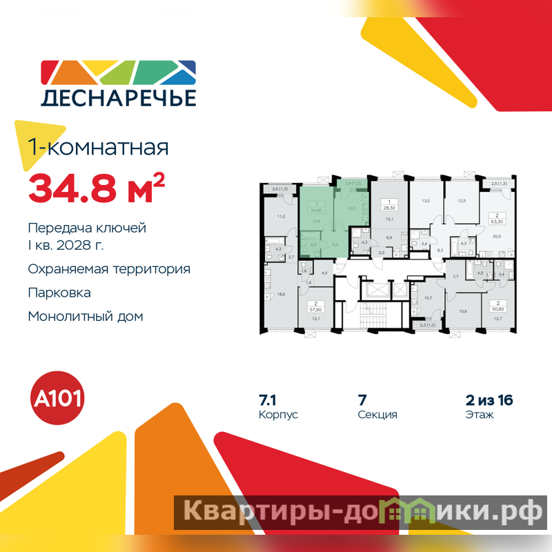 Дом монолитный, многоподъездный, переменной этажности, от 8 до 16 этажей. Квартира находится в 7-й секции высотой 11 этажей в корпусе 7.1. На этаже 5 квартир. В подъезде 1 пассажирский и 1 грузовой лифт. Начало строительства - 2 квартал 2025 года. Окончание строительства - 1 квартал 2028 года. Оформление сделки по договору долевого участия.