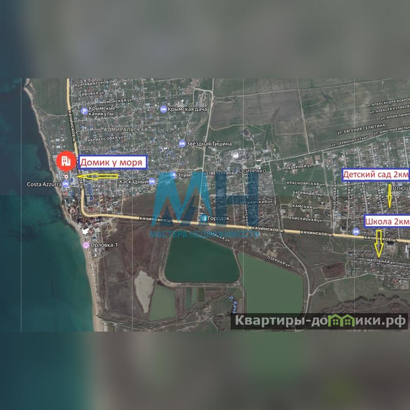 Гостевой дом 28.9 м? расположен у моря в г. Севастополь, с. Орловка, шоссе Качинское. Это отличное вложение как для инвестиций, так и для проживания, так как находится всего в 3-х минутах от популярного песчаного пляжа Золотой Берег в Орловке.