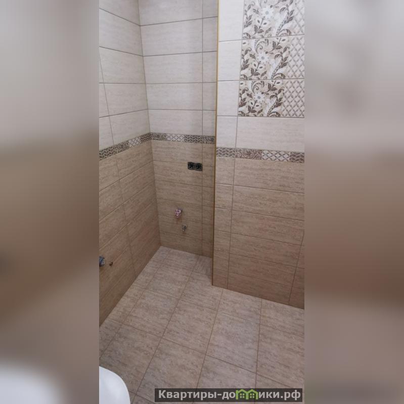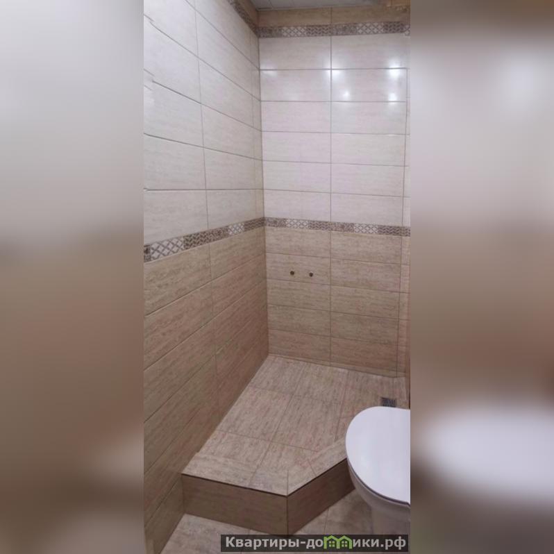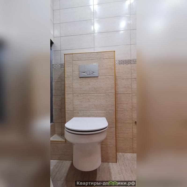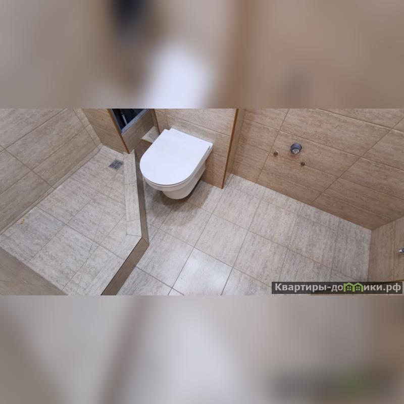 В санузле стены и пол облицованы современной керамической плиткой. Установлен новый подвесной унитаз. Душевой поддон, искусно выполненный из той же керамической плитки, что пол и стены - это создает ощущение целостности пространства. Потолок отделан современными пластиковыми панелями.
