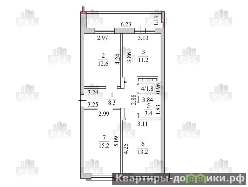 - 3-комнатная квартира на 6/16 этаже, стороны света: юг-север.