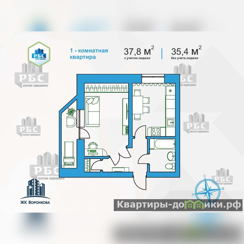 Предлагаем к продаже 1-комнатную квартиру в 16-этажном монолитно-кирпичном доме комфорт-класса ЖК Воронкова по ул.Воронкова, д.9 - ул.Студенческая. Дом сдан.