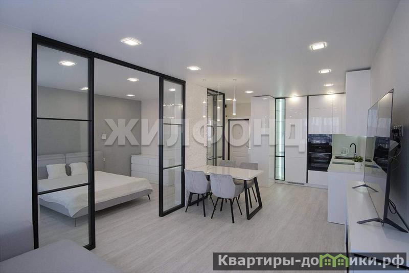 Особенности планировки: двухкомнатная студия с объединенной кухней-гостиной и одной спальней .