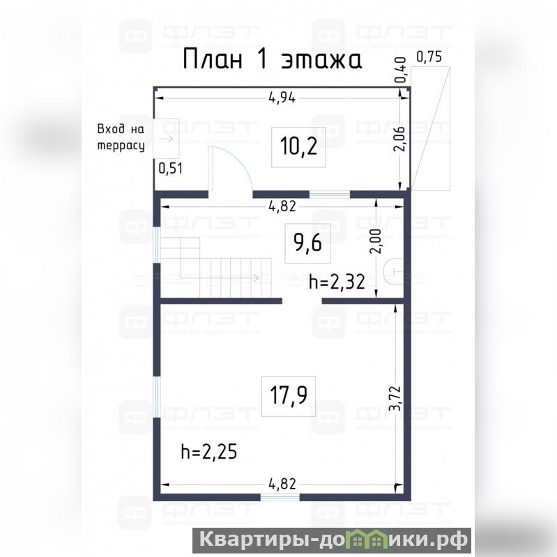 • Планировка: На первом этаже – кухня, гостиная, на втором этаже – спальня.