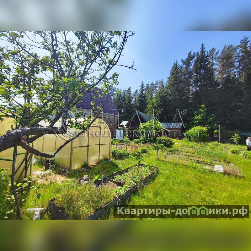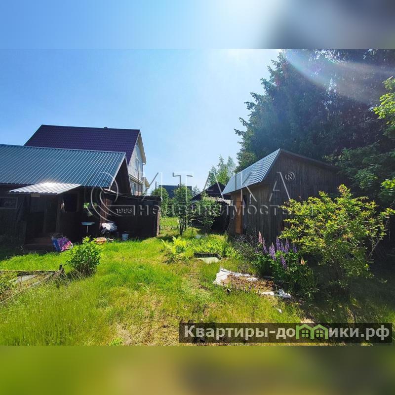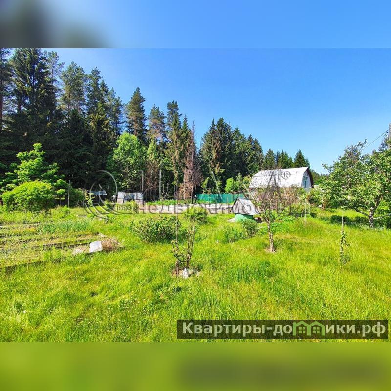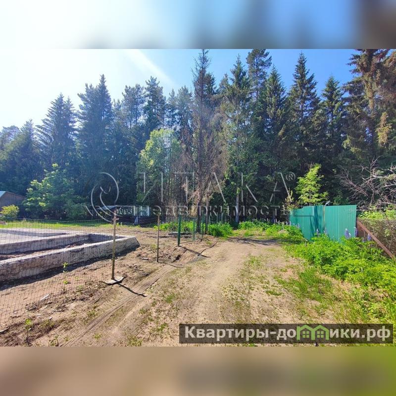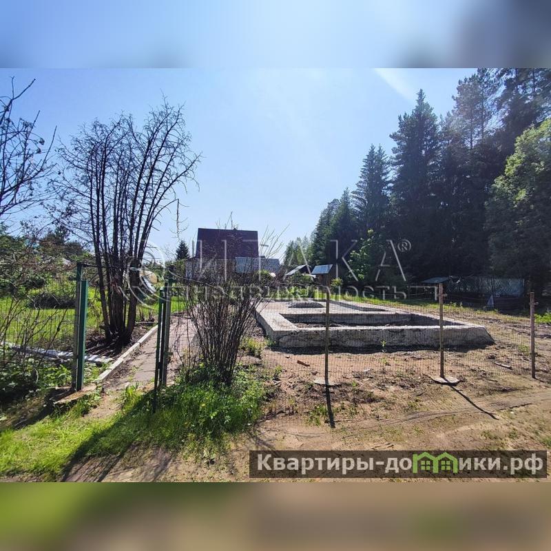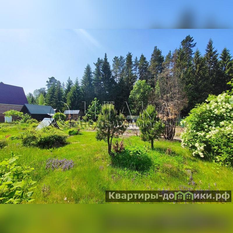 Участок примыкает к лесу, фактическая его площадь 14 соток. Участок ровный и сухой. Разработан, есть дренаж, организованы грядки, высажены плодово-ягодные кустарники и декоративные растения. На площади располагаются фундамент площадью 6Х9 метров от разобранного дома, баня с подключенным водонагревателем, 2 парника, отдельный сарай для хранения хозяйственных инструментов и для дров и туалет. Электричество проведено.