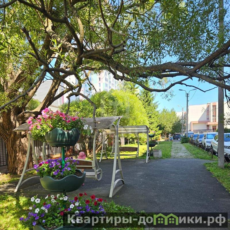 Двор тихий, зелёный, с соснами, ёлками, плодовыми деревьями, цветущими клумбами, качелями, скамейками и безопасными детскими площадками.