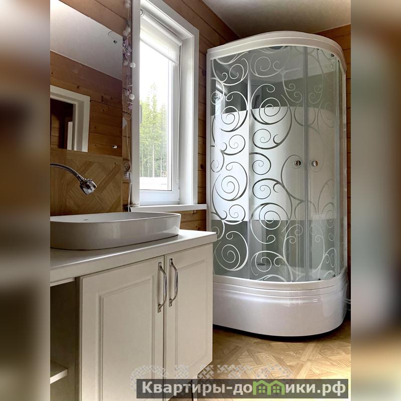 Основной дом: площадью 127 кв.м, жилая 114,5 кв.м. Размер: 8,0х8,0 (с пристройкой и террасой 8,0х12,0). Подходит для постоянного проживания, так и для круглогодичной дачи. Построен 8 лет назад из сухого цельного профилированного бруса 180х120 мм. На ленточном фундаменте, пол с гидроизоляцией, утеплением и бетонной стяжкой. Крыша: стропильная система, сплошная обрешетка, пароизоляция плёночная, утеплитель — каменная вата, гидроизоляционная мембрана, кровля — гибкая черепица шинглас. Окна: двухкамерные стеклопакеты рехау.