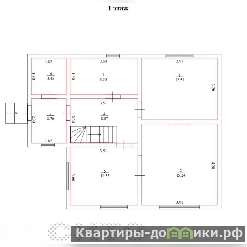 Первый этаж прихожая-гардеробная, кухня-гоcтинaя, комната, санузел с душем.