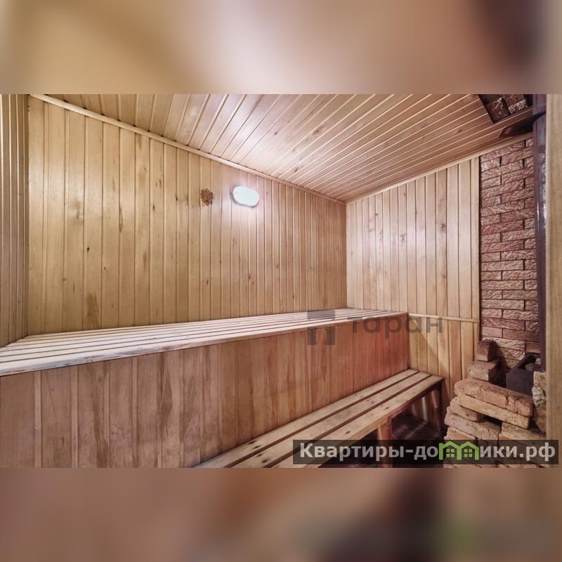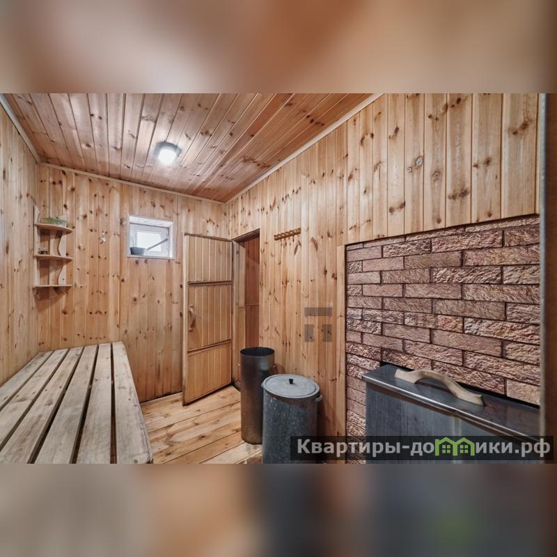 Построена для отдыха, на фундаменте, стены из бетонных блоков, с крышей из металлочерепицы. Уединение и аромат древесного пара — гарантированы.