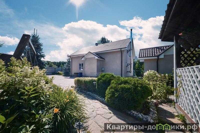 Надёжный, тёплый, построен из бетонных блоков , утеплителем и облицован фасадной штукатуркой на заливном фундаменте. Крыша — металлочерепица. Внутри — возможность обустроить всё по своему вкусу. В доме своя скважина (30 м), отдельные коммуникации и сливная система с выводом в централизованную канализацию по периметру посёлка.