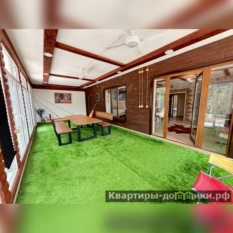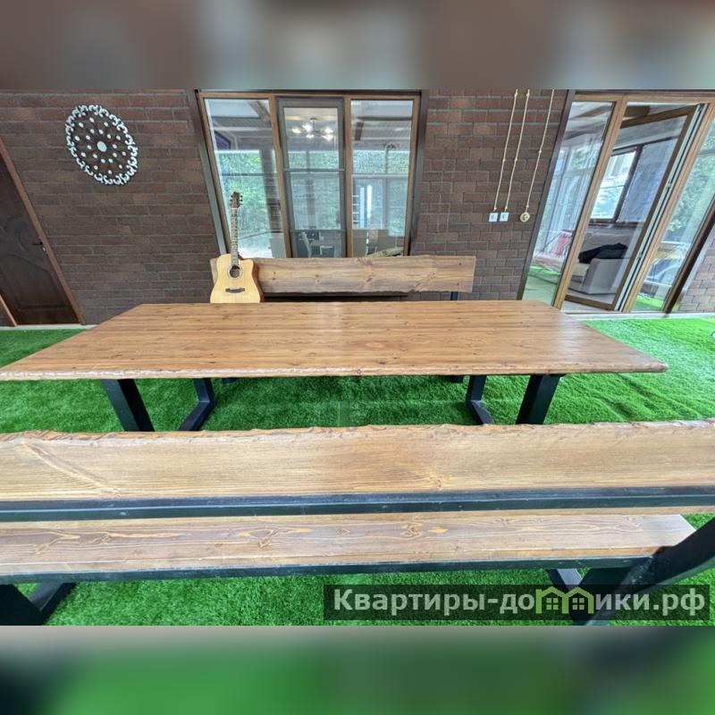**Просторная застекленная веранда-гостиная (40 м?)** – идеальное место для встреч с друзьями: большой стол и панорамное остекление, которое сливает интерьер с природой.