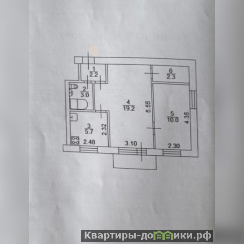 квартира на 3 этаже, площадью 42.4м2 комнаты 19.2м2 и 10м2