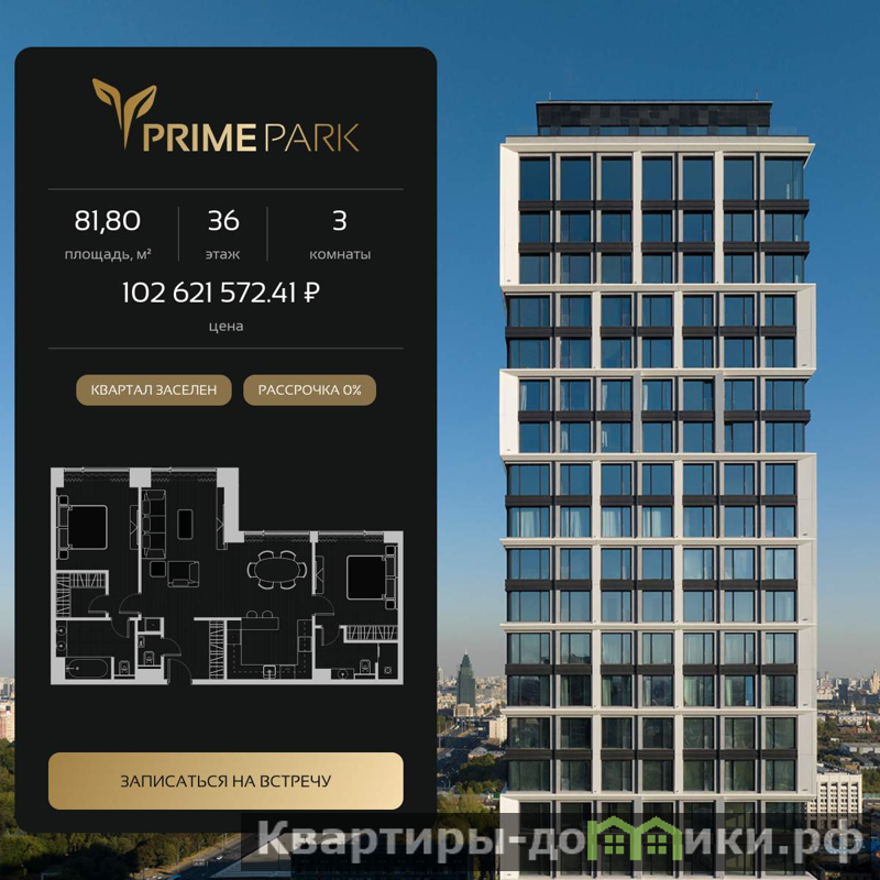 Квартира располагается на 36 этаже 40-этажного дома в ЖК Прайм Парк.