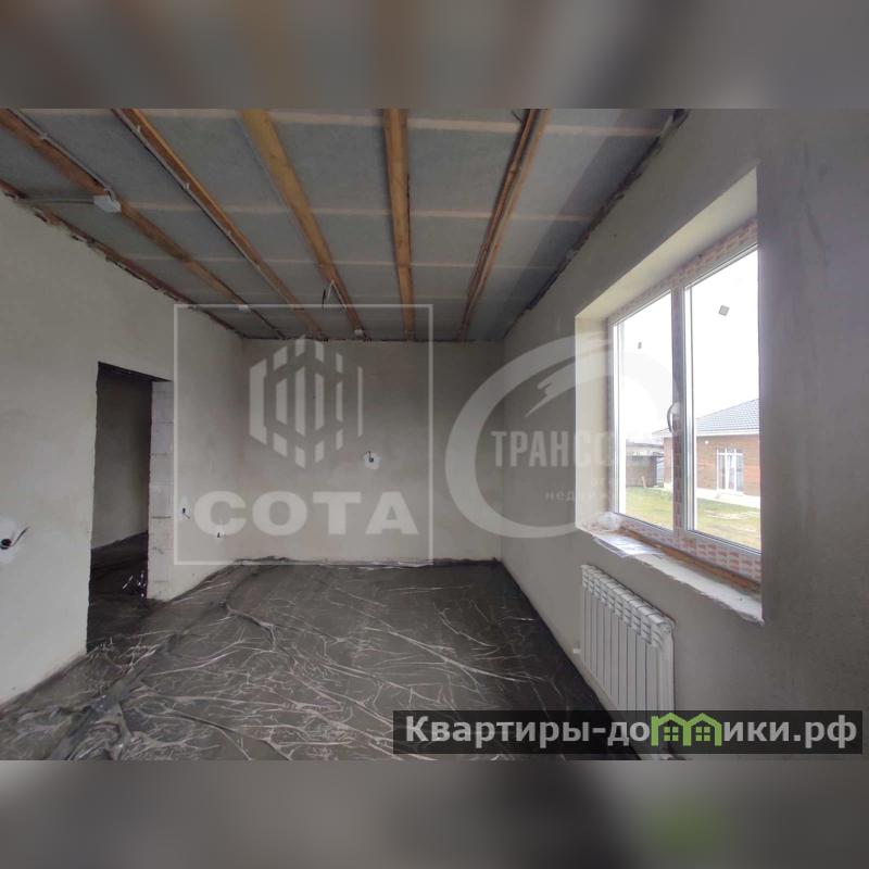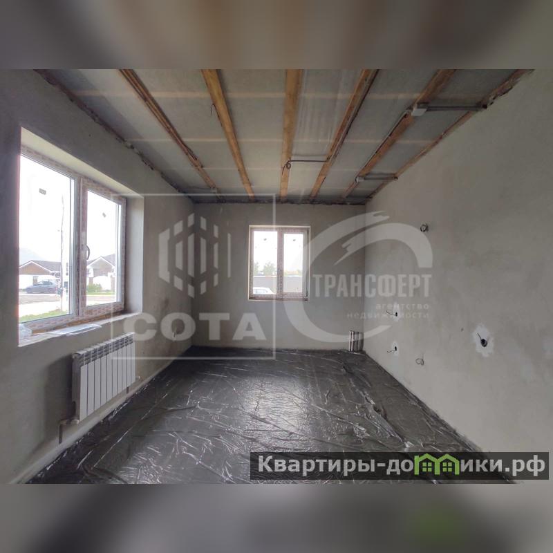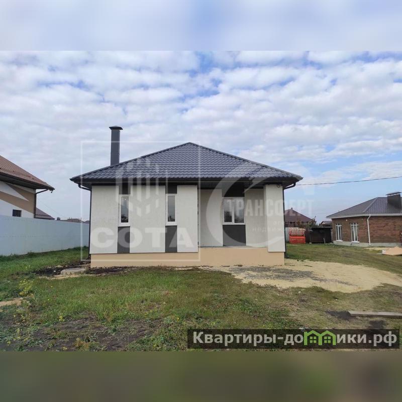 Построен из газосиликата 300 мм, утеплен минватой 50 мм, облицован декоративной штукатуркой. Кровля - металлочерепица, фундамент леточный армированный, на полу полусухая стяжка, качественные пластиковые окна.