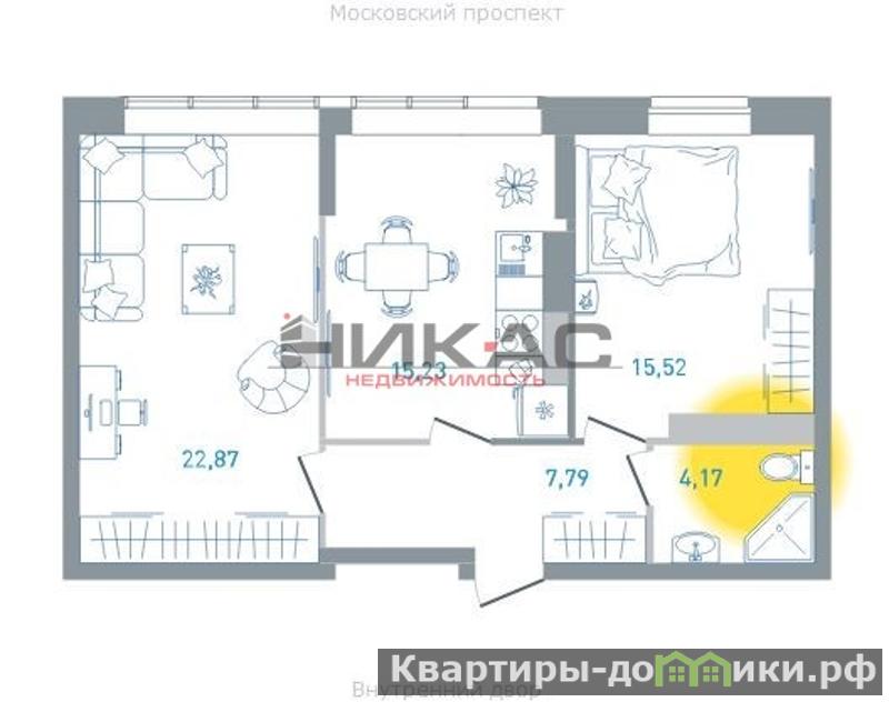 АКЦИЯ!!! Успейте купить просторную 2-комнатную квартиру на Московском проспекте по отличной стоимости 97000 руб. за кв.м. с панорамным видом на город!