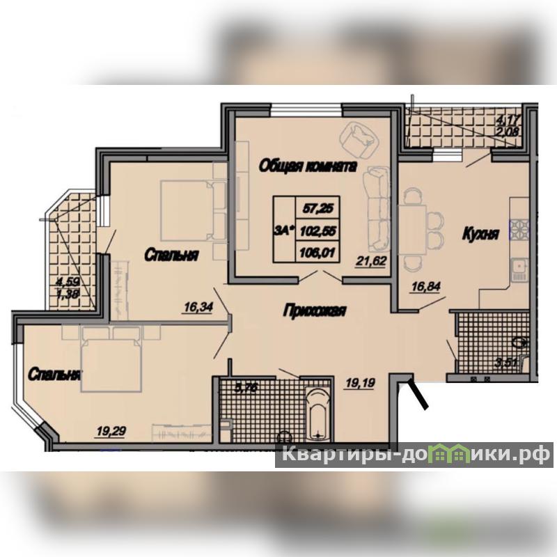 - площадь кухни 19 кв.м. с выходом на лоджию 4 кв.м.