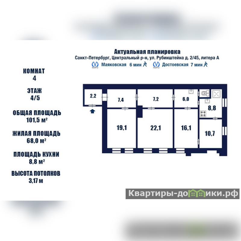 Арт. 119842916 Отличная во всех отношениях квартира предлагается к продаже в историческом центре Санкт -Петербурга. Ее можно приобрести как для жизни, так и в качестве ДОХОДНОГО жилья. Рассмотрим все преимущества: Золотой центр Саннкт-Петербурга, рядом и Московский вокзал, метро Площадь Восстания, Маяковская, Достоевская, Владимирская, Гостиный двор в шаговой доступности - 5-1015 минут. <br/>Рядом и все главные достопримечательности города: театры, большие и маленькие, музеи, набережные Фонтанки и Мойки, ТРЦ Стокман и Галерея, небольшие магазины и магазинчики, кафе и рестораны на любой вкус и кошелек. <br/>Капремонт дома - 1957 год<br/> Двор чистый, БЕЗ БАРОВ !!! <br/>Парадная ухоженная, с красивой люстрой. <br/>Все окна из квартиры выходят в тихий двор. <br/> Квартира в стабильно хорошем ремонте, степень износа ремонта не более 15 %. <br/>Один собственник, собственность более 5 лет! <br/>Радушно ждем респектабельного Покупателя!!!<br/>