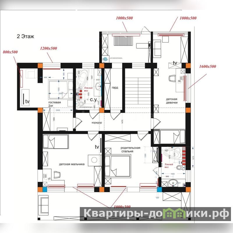 2 этаж: 4 спальни, гардеробная, два санузла, 3 крытых террасы.