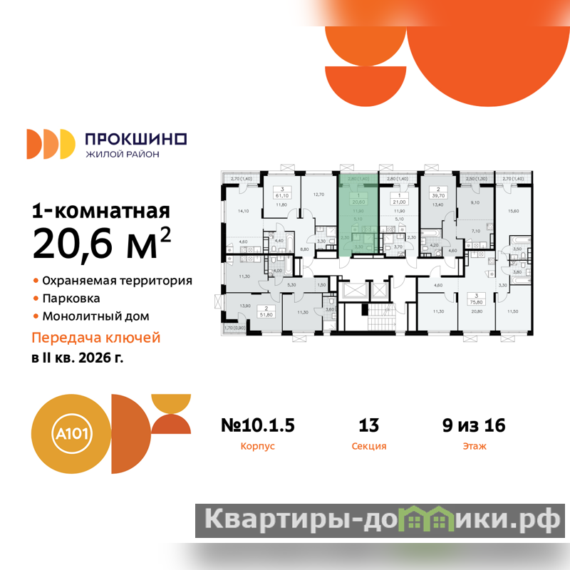 Дом монолитный, многоподъездный, переменной этажности, от 7 до 16 этажей. Квартира находится в 1-й секции высотой 16 этажей в корпусе 10.1.5. На этаже 6 квартир. В подъезде 1 пассажирский и 1 грузовой лифт. Начало строительства - 2 квартал 2023 года. Окончание строительства - 2 квартал 2026 года. Оформление сделки по договору долевого участия.