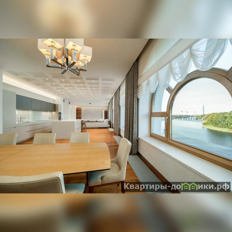 Планировка хороша и может быть доведена до совершенства. Сейчас включает в себя гостеприимный холл с гардеробной и гостевым санузлом, приватную хозяйскую зону и просторное гостевое пространство.Изюминка квартиры — это несомненно гостевое пространство. Более 90 м с прямым видом на воду. Это один из лучших видов в городе — излучина Невки, Елагин, все новые доминанты. Четыре больших окна, два из которых арочные — выгляди очень эффектно. Само пространство поделено на три функциональные зоны — обеденную зону с большим столом на 12 персон, диванную зону и зону кухни с отдельным островом, за которым можно удобно расположиться с чашкой кофе. Кухня вся укомплектована техникой Kuppersbusch, в том числе винный шкаф и холодильник. Сама кухня от известного бренда LEICHT.Приватная хозяйская зона отделена от остальной части квартиры. Включает в себя мастер спальню родителей, большую детскую комнату с балконом и со своей ванной комнатой, постирочную, гардеробные и комнату для мини спортивного зала. Вся мебель от итальянских и немецких брендов Besana и Bod'or КТМ.