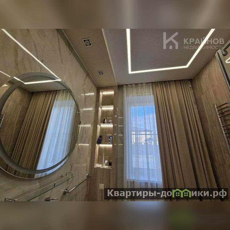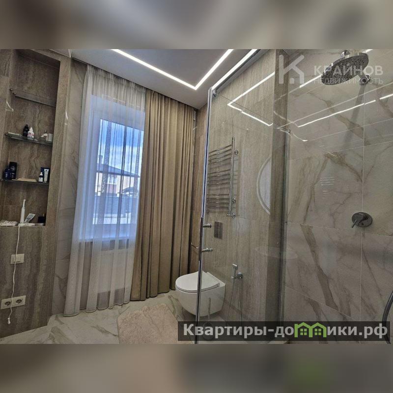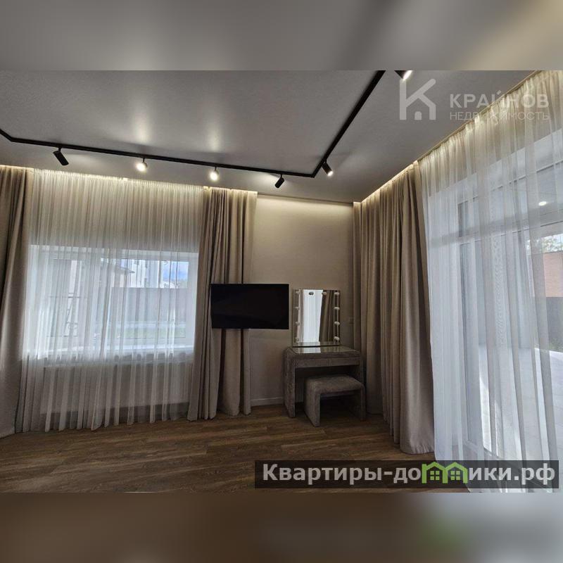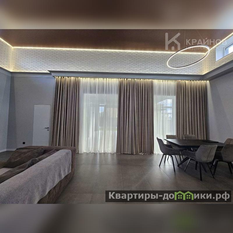 Тёплый пол по всему дому, на полу керамогранит, в спальнях кварцвинил. На стенах обои, скрытые двери, в каждой комнате кондиционеры, подвесные потолки с разными световыми, современными элементами подсветки. Окна тройной стеклопакет, в гостиной витражные окна в пол, с выходом на терассу из гостиной и спальни.