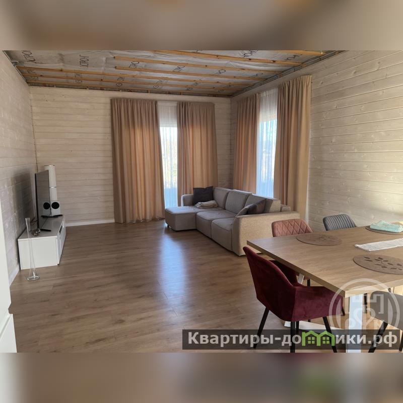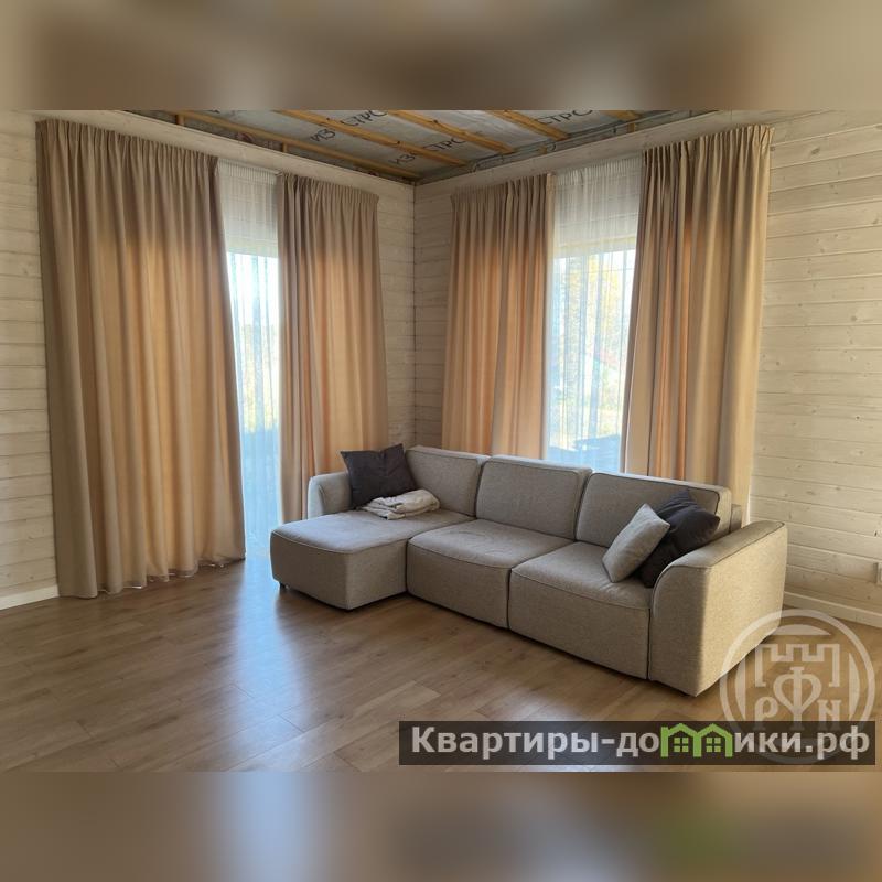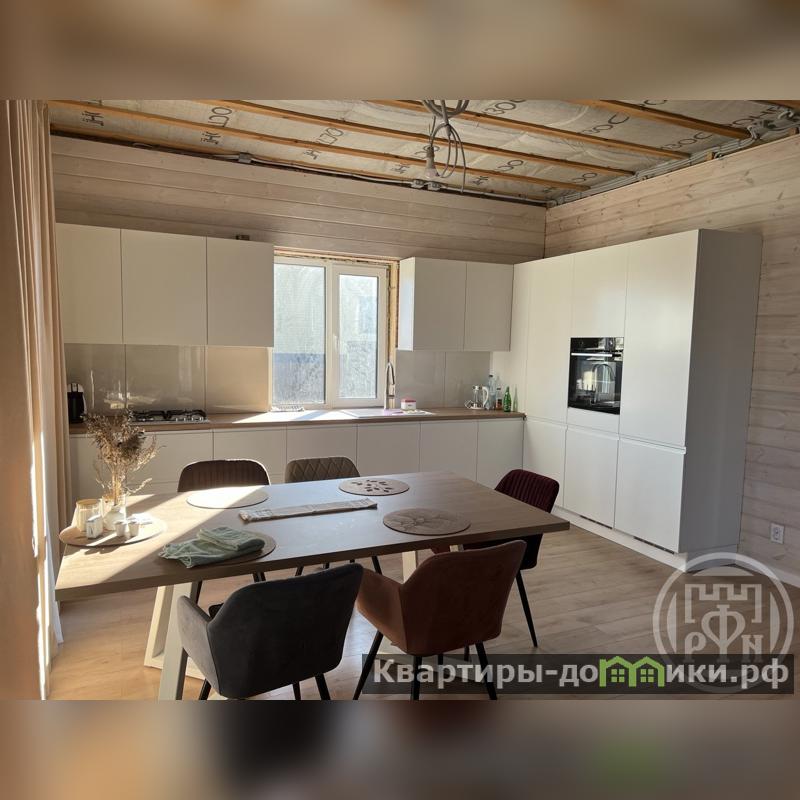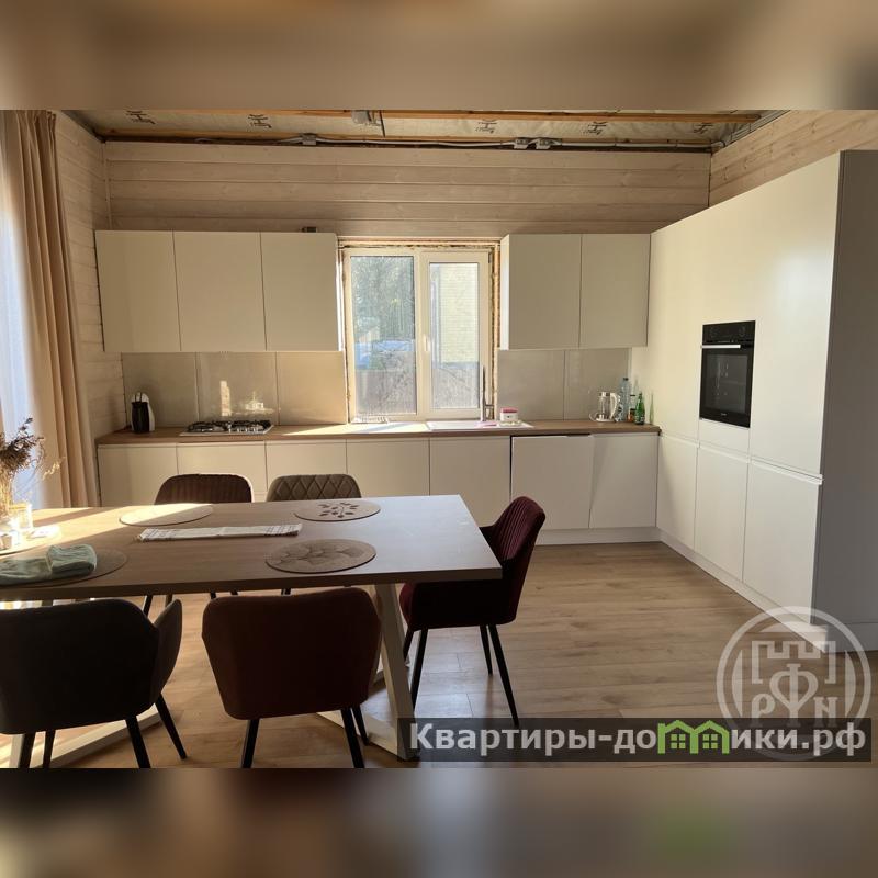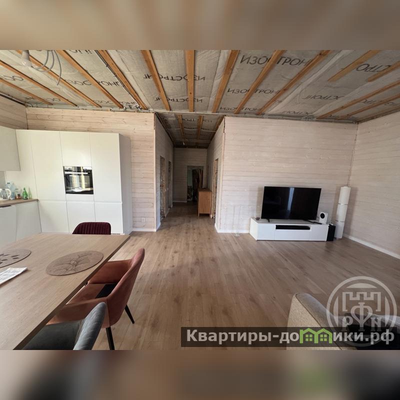 На кухне установлена мебель по индивидуальному проекту, полностью оборудована техникой (холодильник, посудомоечная машина, духовой шкаф, варочная панель, вытяжка). В гостиной расположились уютный мягкий уголок с телевизором. Спальные комнаты без внутренней отделки, что позволит будущему хозяину воплотить свои идеи.