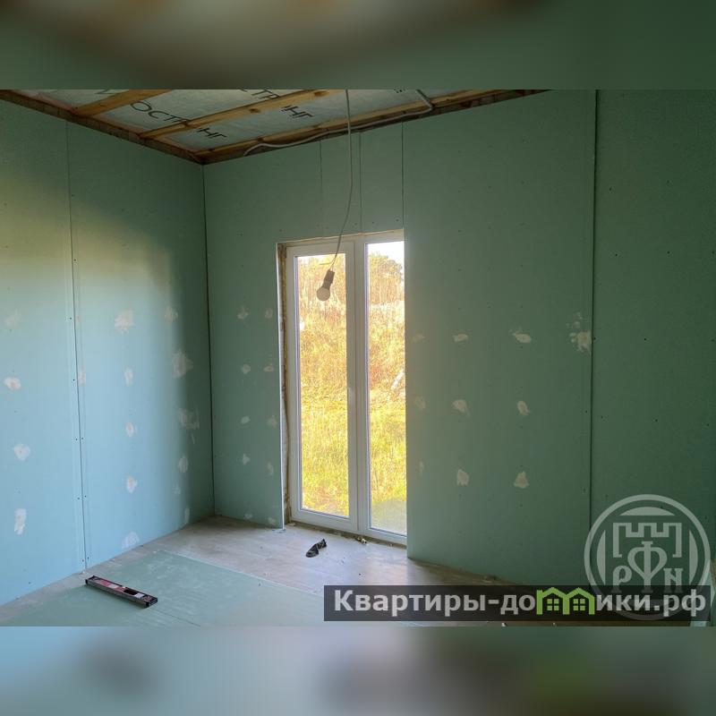Дом был построен в 2023 году по индивидуальному проекту в современном стиле на монолитном фундаменте. На этаже располагается просторная кухня-гостиная, две спальни, сауна, ванная комната и техническое помещение.