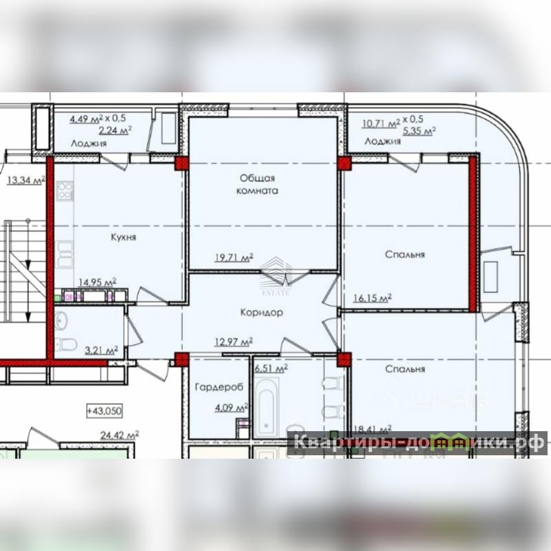 Площадь: 104 м?, с просторной кухней-гостиной на 15 м?.